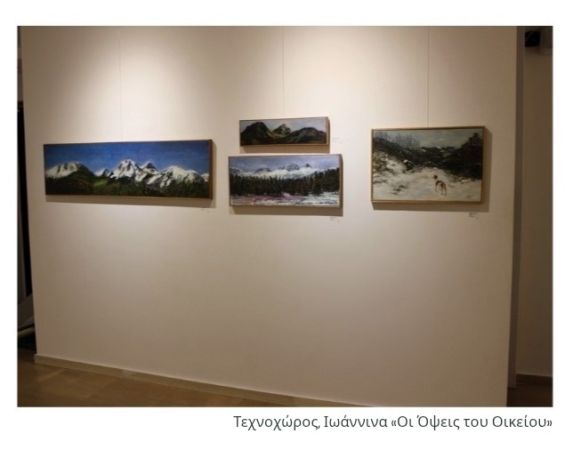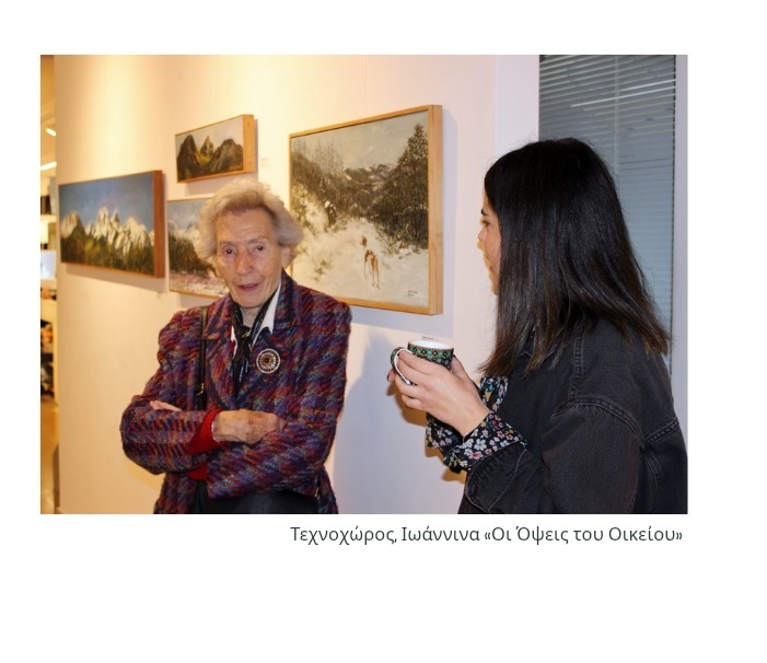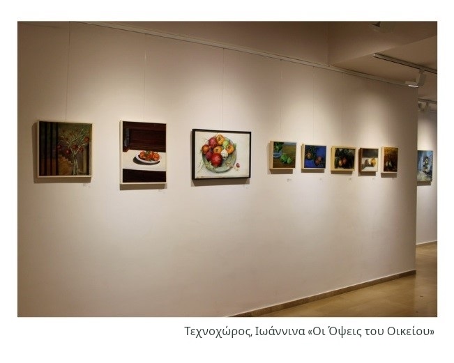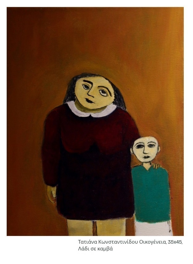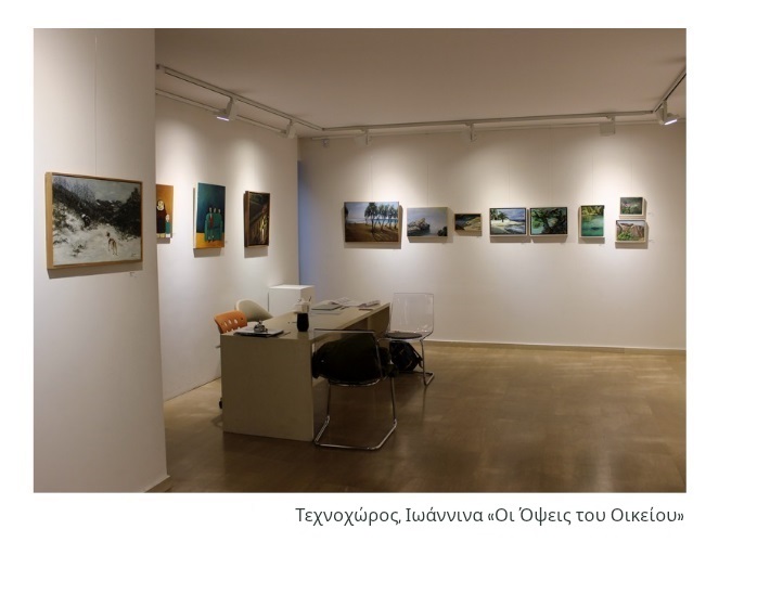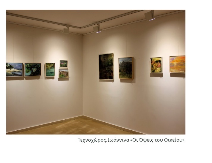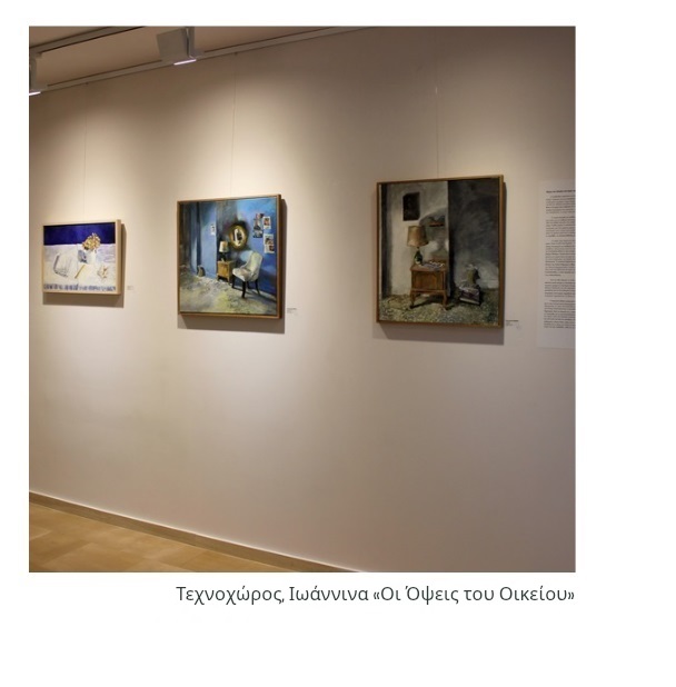 Το οικείο, στην πρώτη του ανάγνωση, βρίσκει την έκφρασή του στον χώρο που μας περιβάλλει. Οικείοι χώροι, όπως το σπίτι, ένα δωμάτιο – όπως τα εσωτερικά του Δημήτρη Παπανικολάου – ή το τοπίο της παιδικής ηλικίας, λειτουργούν ως σταθερές σε έναν κόσμο που συνεχώς μεταβάλλεται. Το οικείο μπορεί να βρίσκεται σε γενέθλιους τόπους όπως αυτοί που συναντάμε στο έργο της Κατερίνας Θεοδώρου, της Ελένης Μαραγκουδάκη και της Αναστασίας Φλώκα ή στην επαφή με το υγρό στοιχείο που περιβάλλει τον κόσμο της Μαρίνας Βλαχάκη, της Ειρήνης Φλώρου. Οικεία είναι τα αντικείμενα τοποθετημένα με τάξη σε ένα τραπέζι, τα λουλούδια σε ένα βάζο, φρούτα και καρποί όπως στο έργο του Δημήτρη Παπανικολάου, της Μαριέττας Πεπελάση, της Βάσως Ραγκούση, της Λένας Καφαντάρη, της Μαρίας Σιγάλα, της Φλώρα Μάστρακα, της Γιούλης Φραντζέσκου και της Φούλας Θαλασσινού. Η οικειότητα βρίσκεται στην διατήρηση της παιδικότητας και της λαχτάρας του χριστουγεννιάτικου δέντρου της Λιάνας Μέρμηγκα, καθώς και στην γνώριμη γωνιά μιας πόλης, όπως αυτή που βρίσκουμε στο έργο της Πέγκυς Καλογεροπούλου. Οικεία είναι η αίσθηση των χρωμάτων που αφήνει η θέαση ενός ηλιοβασιλέματος, όπως αυτό που βλέπουμε στο έργο της Μαριέττας Πεπελάση. Ακόμα, οι ιδιαίτερες μορφές της Τατιάνας Κωνσταντινίδου, οι τόσο προσιτές και ταυτόχρονα απόμακρες, αιχμαλωτίζουν την έννοια του οικείου στη μεταξύ τους αλληλεπίδραση.